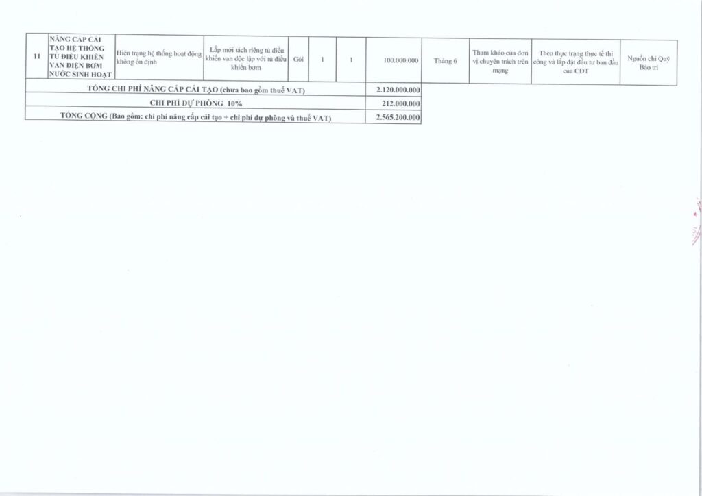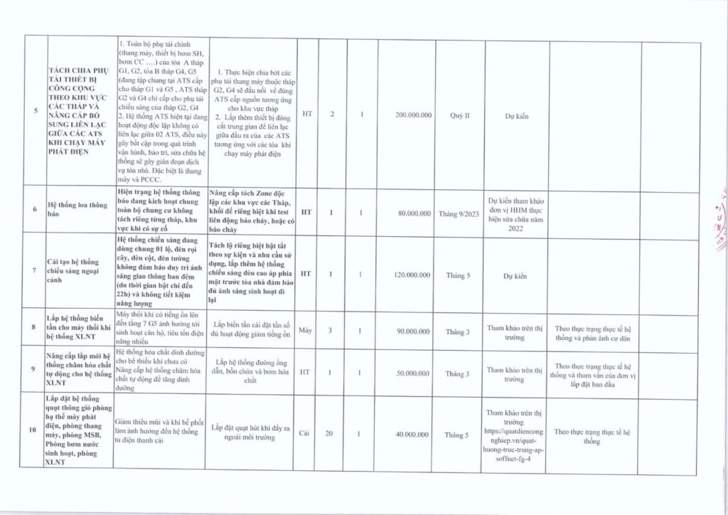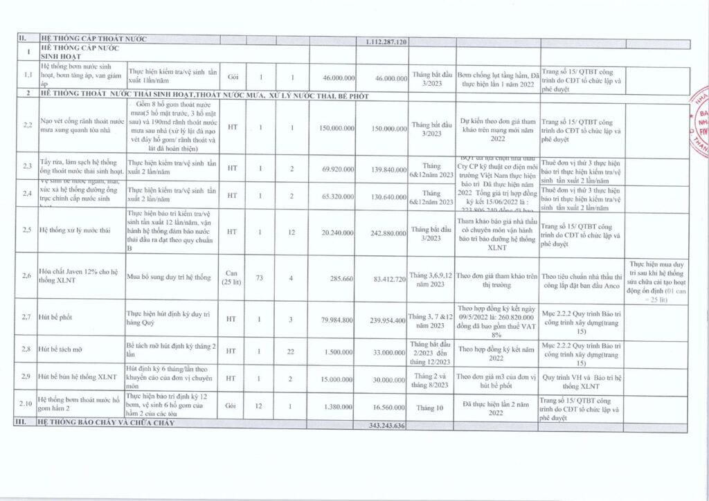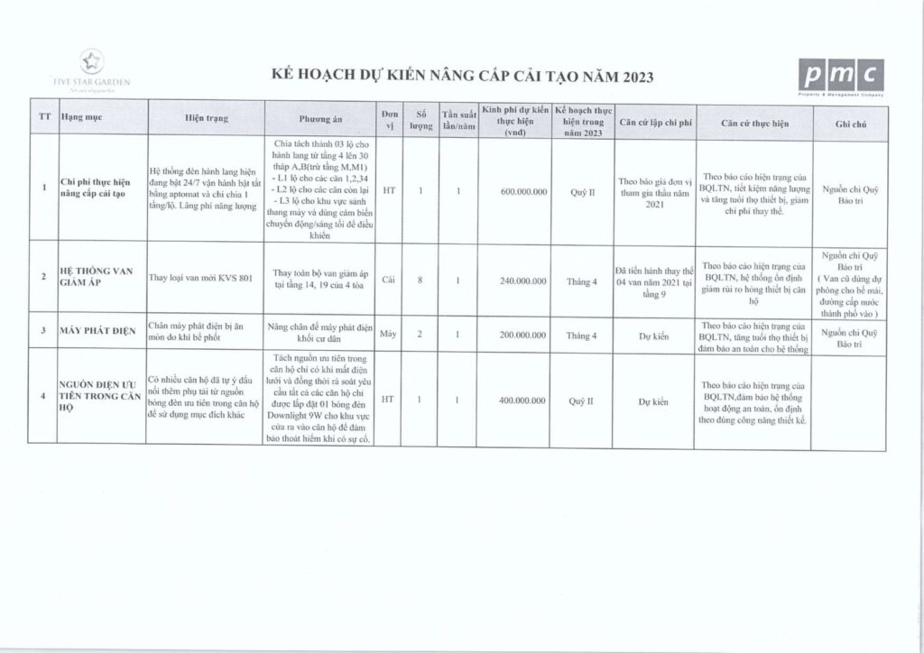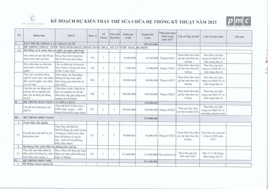 Nhằm phục vụ cho hội nghị nhà chung cư thường niên, BQT xin gửi đến Quý cư dân bản dự trù kế hoạch bảo trì năm 2023, cụ thể: