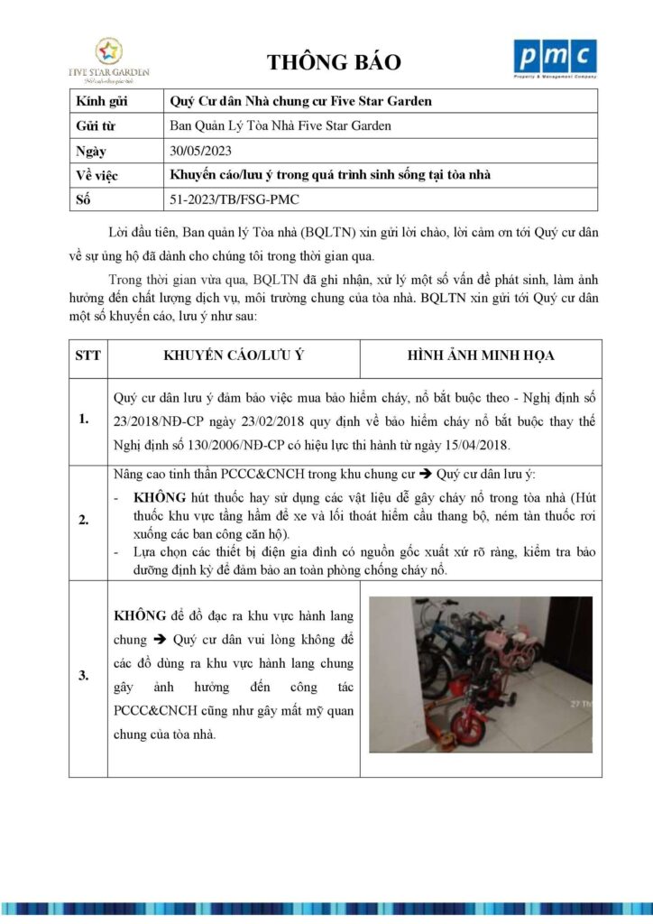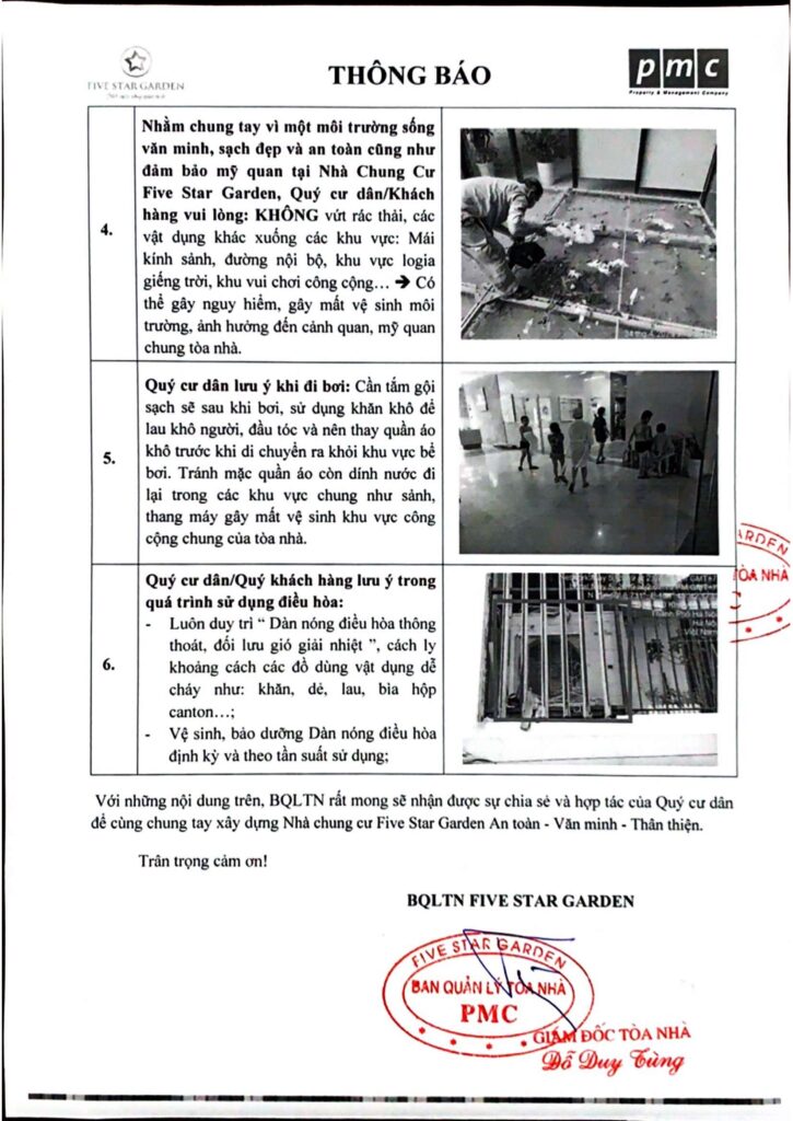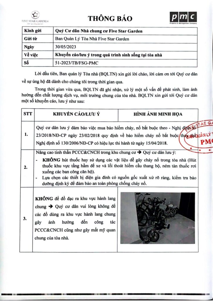 Với những nội dung trên, BQLTN rất mong sẽ nhận được sự chia sẻ và hợp tác của Quý cư dân để cùng chung tay xây dựng Nhà chung cư Five Star Garden An toàn – Văn minh – Thân thiện.