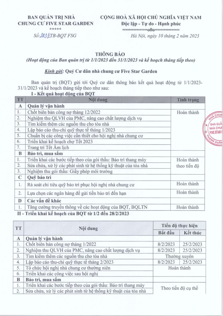 Thông báo vv Hoạt động của Ban quản trị từ 01/01/2023 đến 31/01/2023 và kế hoạch tháng tiếp theo Tháng ba 4, 2023 admin Thông báo 0